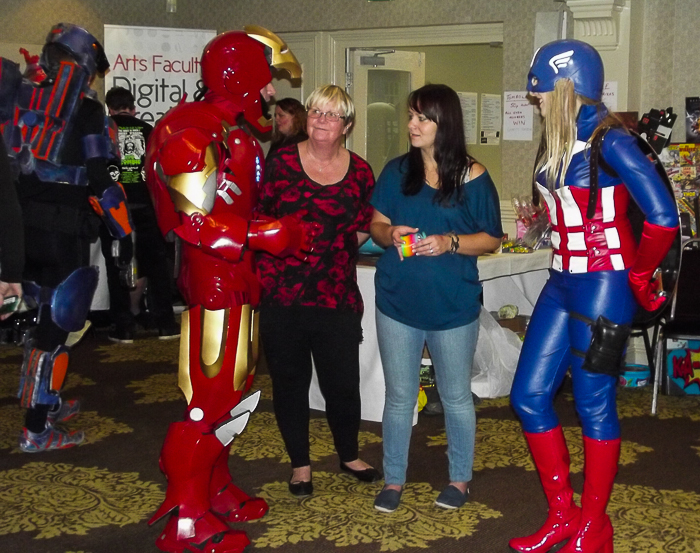 The gaming aspect remains something of a mystery to me. I would quickly become addicted to such activity if I were to give it a try, so, for the sake of my writing, I avoid that activity. But there were many players there and much equipment and associated activity that kept them well occupied. And one of this group, Dave Hughes, volunteered to have his hair and beard clipped in public in aid of the Marie Curie Foundation, for which he has so far raised over £2,000. His JustGiving page was closed on Monday, but I’m sure he’d be very happy to accept further donations. You can find him under his internet alias of Selezen on Facebook, here, on Twitter, here, and at his website, here, where there’s a link for the charity.