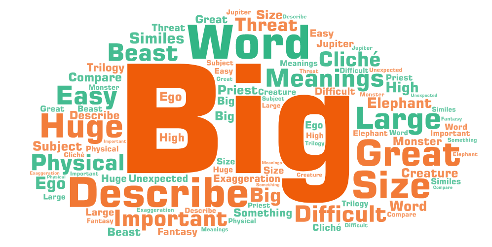 Big is a word with many meanings, including great, large, important, and difficult. The tendency is to use the word only to describe physical size. At present, I’m working on a novelette introducing one of the characters in my adult epic fantasy. He’s tackling a huge beast, and it would be too easy to describe it as being ‘as big as an elephant’. That cliché gives no real sense of the threat of the creature. When using similes, it’s often better to find something unexpected with which to compare the subject you wish to describe, or to use exaggeration. Perhaps a monster could be ‘as big as a High Priest’s ego’ (unexpected) (readers of the fantasy trilogy will understand this reference), or ‘as big as Jupiter’ (exaggeration). In fact, in my story, I use different techniques to convey the size of the beast and its threat. But you’ll have to read the story to discover that!
