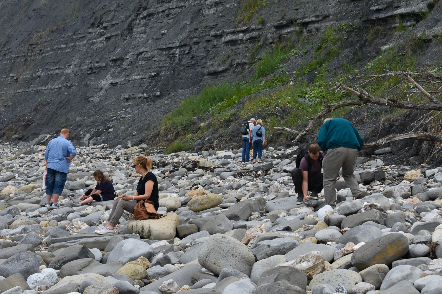 Here, we looked at various rocks in the hope we might spot a fossil, since this is the area famous for such finds.