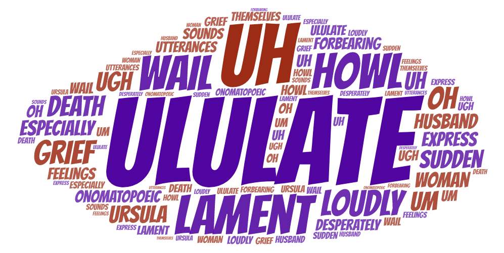 To ululate is to howl, wail, lament loudly. Although not generally considered onomatopoeic, in the right context, the verb can convey the loud, wavering sound that is ululation, especially that expressed as grief by certain tribes. ‘After the sudden death of her second child, Ursula, normally a silent forbearing woman, ululated long, loud and desperately in lament for his loss.’ The letter ‘u’ doesn’t lend itself generously to onomatopoeia, but there are utterances such as ‘ugh’, ‘uh-uh’, ‘uh-oh’ and ‘um’, all of which words express feelings as the sounds themselves.