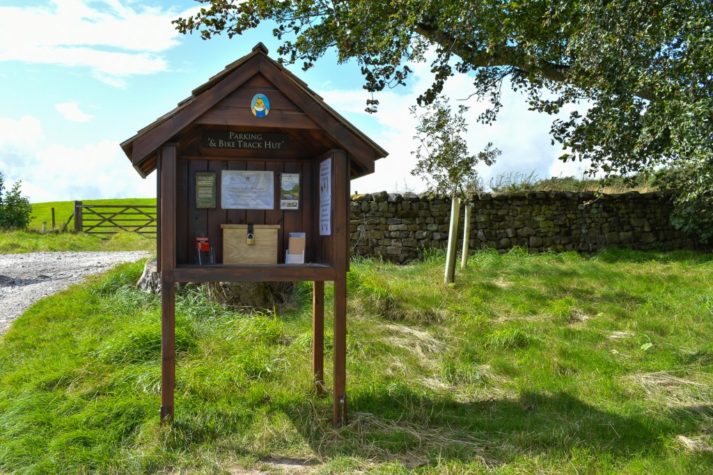 The attraction is reached along a maze of narrow, country roads that eventually lead to a car park beside the building used as a bivouac and next to the field used for camping and the Yurts. There’s a sign suggesting you pay for parking in the ‘hut’, which turns out to be a small covered notice box containing an honesty box and some literature. There are toilets on the site.