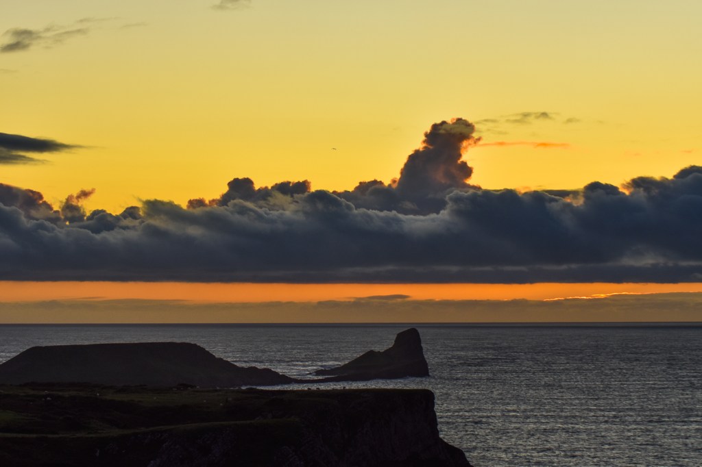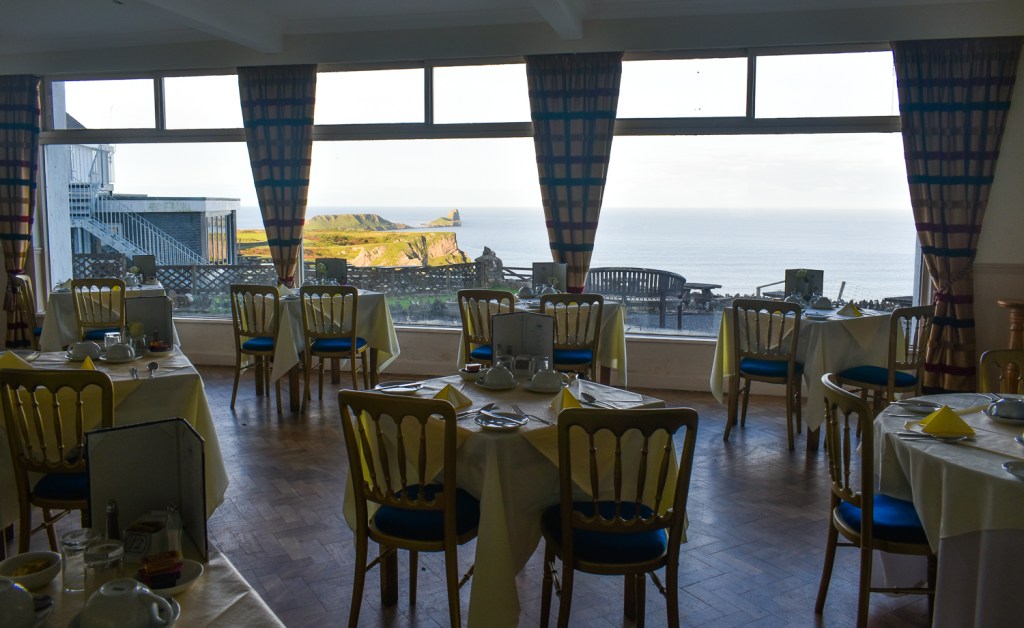 Morning brought our last breakfast in the dining room reserved for that meal with its views across the headland to Worms Head. I took a final shot from the bedroom window, capturing the scene with the early morning sun on it, before we checked out.
