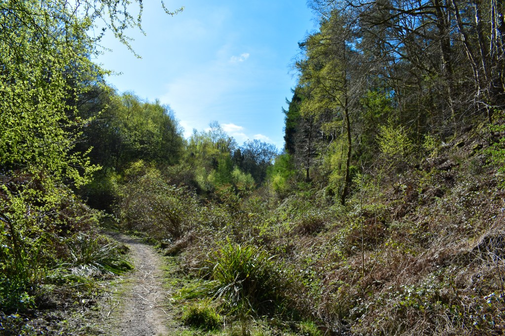 Out earlier than usual this morning to greet the freshness of an evaporating overnight frost. The picture shows a stretch of path that leads from an old railway bridge called Horton Bridge. And the view to the right of the path, into those young trees bearing this spring’s greenery, is toward the tunnel that used to take trains under the road. Again, we met few other walkers, but a family of cyclists was resting at one of the wider junctions as we made our way back home. Easy to observe that all-important social distancing there.