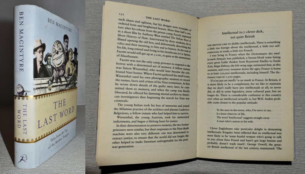 Page 153 begins a 4-page article headed ‘Intellectual (n): clever dick, not quite British’ and goes on to describe the prevailing attitude in Britain regarding people with intelligence; ‘The British like to dislike intellectuals.’ Which is still the case. He goes on to give examples of clever British writers and their comments on intellectuals, which are mostly derogatory, and often reveal prejudices those writers were probably unaware they held. The humour is a little caustic, and there’s an element of the self-congratulatory about the pieces that will inevitably raise the hackles of some readers. Others, however, will find much to enjoy here. And I really must get around to reading this!