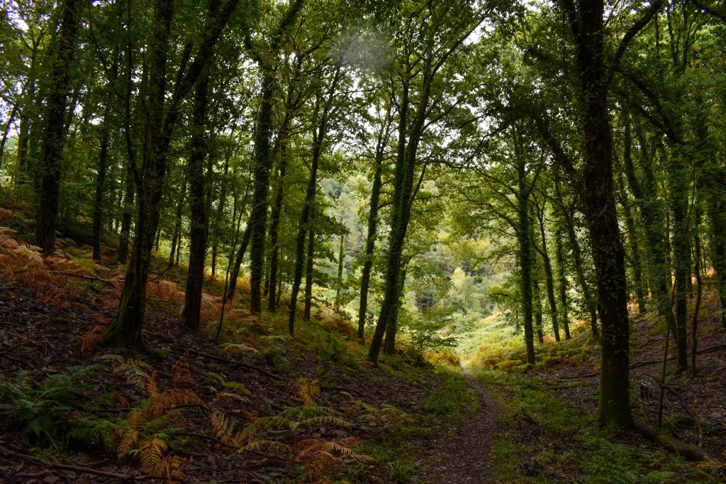 Another dull day here. But we managed a walk through a favourite part of the forest, and I captured a few scenes worthy of sharing. So here are a couple of those. The small brook was completely dry only three days ago, but the recent rain has revived it into a lively stream. And the valley, with the tree-lined hill at its end, is starting to reveal some of the autumn colours that promise to add brightness to the greenery over the next few weeks.