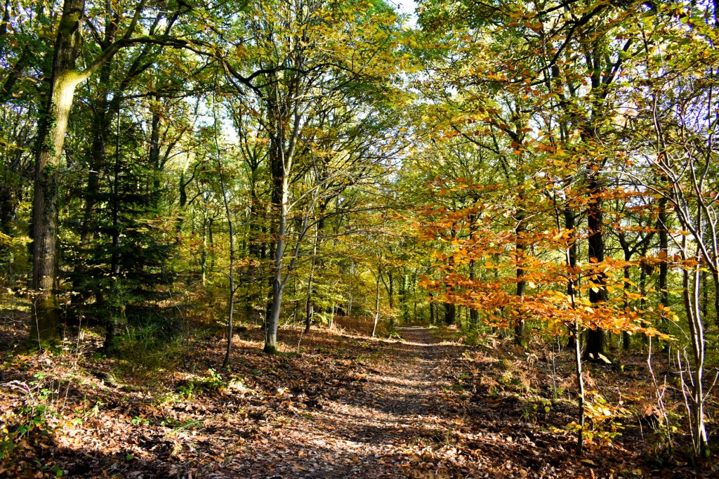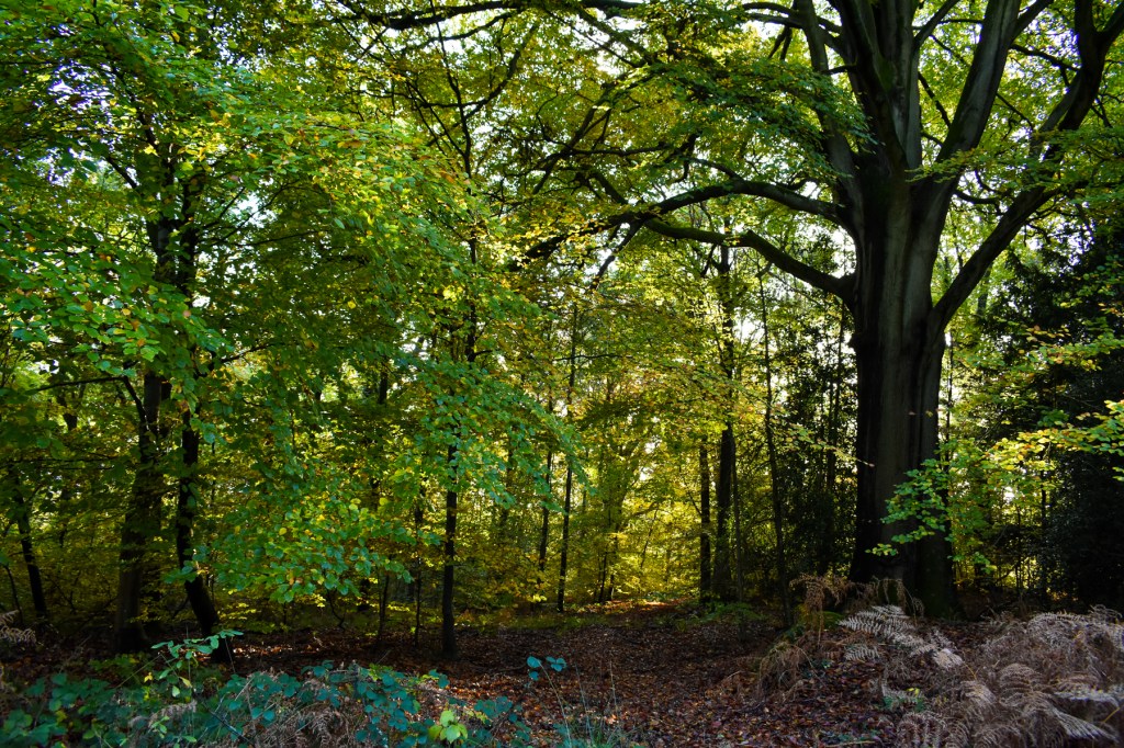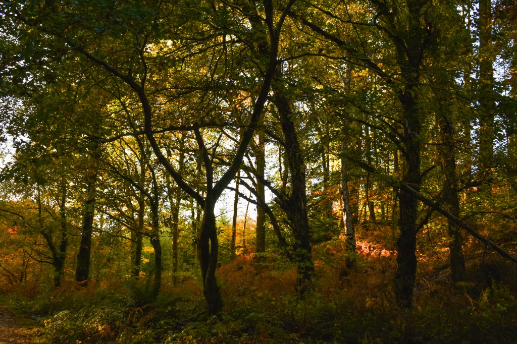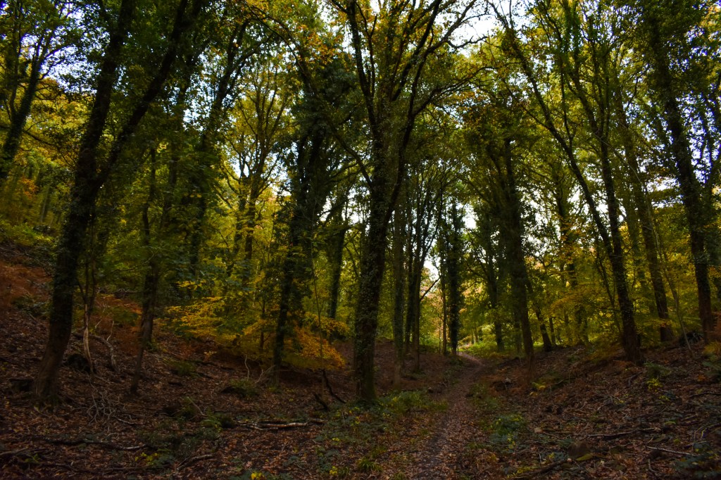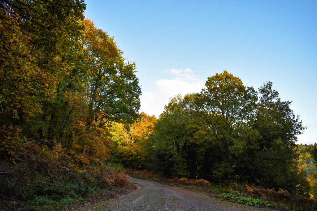 The morning looked dull with skies full of potential rain, so we waited until after lunch for today’s walk. As it happened, the morning rain was sparse and short lived. But our afternoon saunter found us in a world full of contrasts in both light and shade and colour. Parts of the woodland have turned but other parts are still very green.