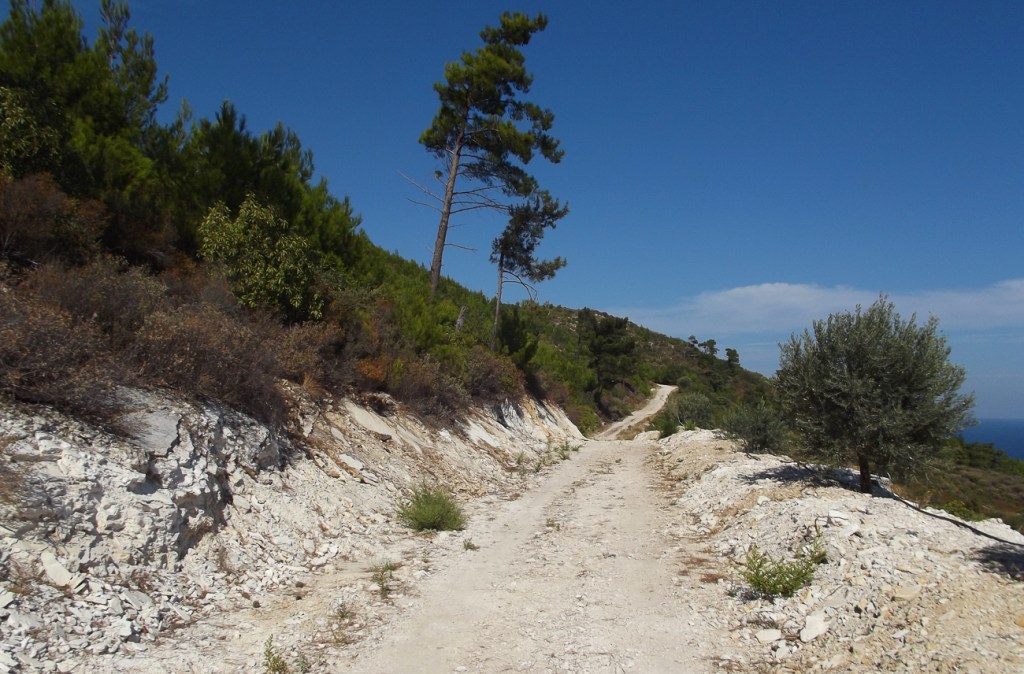 Enjoy the picture of our peaceful forest and a rural road in Samos (the island recently damaged during the Turkish earthquake).