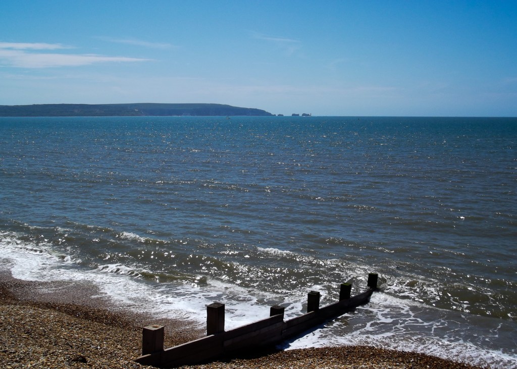I took this on a day trip whilst staying a bit further along the coast, Lynette. The small ‘islets’ on the horizon are the Needles, a series of rock outcrops just off the coast of the Isle of Wight. I was on the beach at a small seaside town called Milford on Sea, just south of the New Forest. The water is where the Solent joins Poole Bay, part of the English Channel.