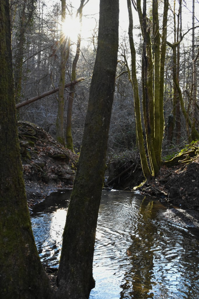 It’s the brook that eventually runs through the village where we live, Brenda, and drains the beaver enclosure, so we hope there may be fish in it in the futre, as beaver activity often results in fish populating their waterways. At present, it is a much varied stream, and just above this pool (made by natural wood fall in and close to the far rim of this pool forming a sort of dam), there is a rope swing used by some of the more adventurous loval kids.