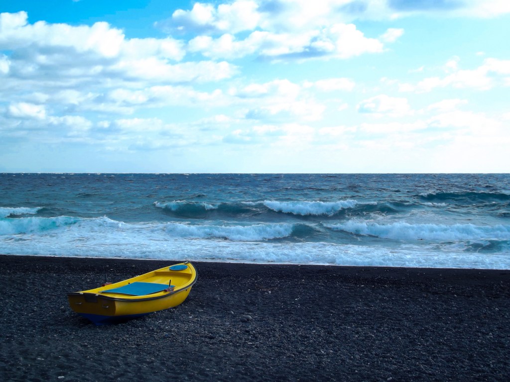 I saw the boat on the black sands and loved the way it contrasted with the blue of the Mediterranean.