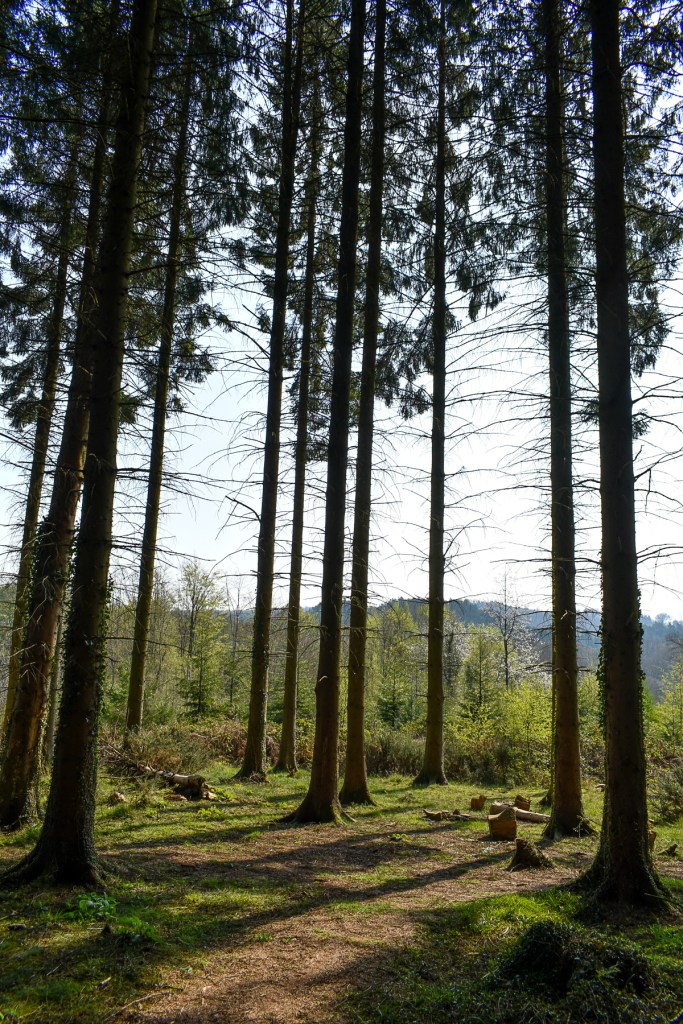 They’re Douglas Firs, Lynette. The tallest trees to grow in the UK. It’s a plantation that will, eventually, be felled for timber. But we hope that won’t happen for a long time yet. We love this part of the forest; so open but also mysterious. One of our favourite places, where we can easily walk wherever we like without following paths.