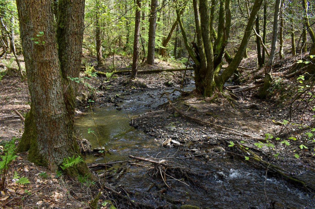 Our woods are criss-crossed by tracks and trails, butsome of these are no more than animal tracks, and they’re the ones we most enjoy travelling. Today we were climbing and tramping through parts of the forest rarely visited. Came across an old WWII pill box, and a tumbled brick building of indeterminate history. We were trying to follow overground the line of the old railway tunnel, and managed most of the route as it took us over hills and across narrow steep valleys!