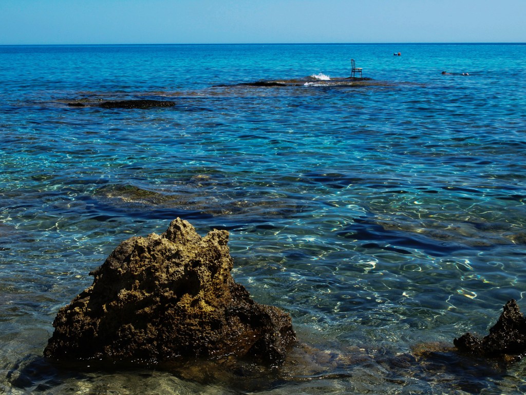 It’s in the Mediterranean, Brenda, where tides are very small. I later passed the place again and saw an old man sitting there wearing a hat. Unfortunately, I was unable to picture him, as we were being called back for the coach to return us to our hotel! And you’re right, there is a person swimming. This was taken on the Greek island of Crete.