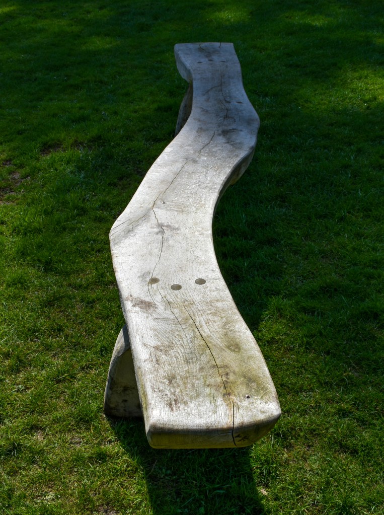 I think it’s bendy just because that’s the shape of the tree trunk it was made from, Brenda. But it fits in with its location beside a lively but small river running down through the Dorset town of Lyme Regis. As for the one made to prevent courting couples getting too close, that sounds like something out of the Bible Belt to me.