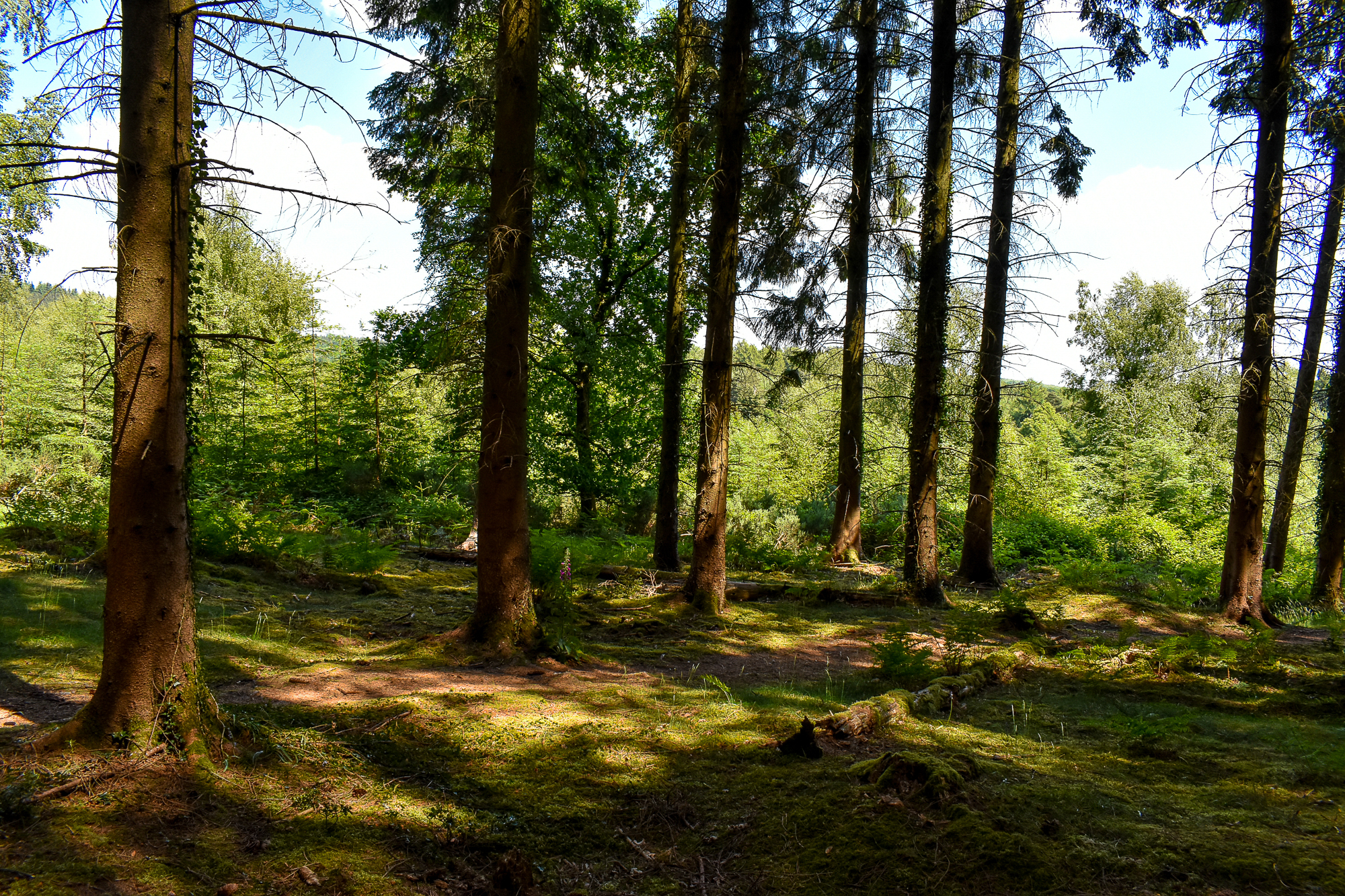 Yes, this path splits at this point, Noelle, and we can go either way, and do. But this is a part of the forest where we often ignore the paths completely, as it’s an area where it’s easy to roam free among the trees.