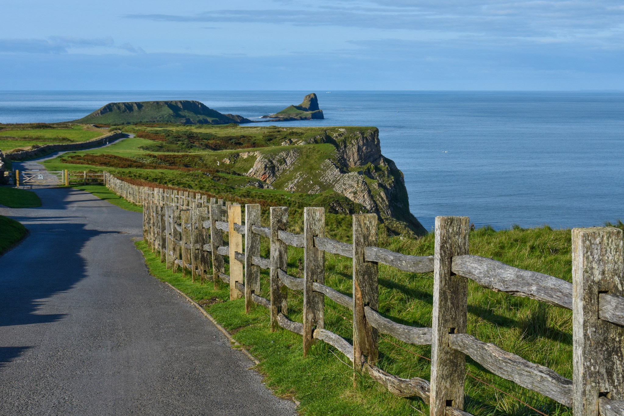 But you don’t need to climb the fence. You can enter the area behind it through the gate at the end of the road, and there is a lot of clifftop available to walk along, all with great views.