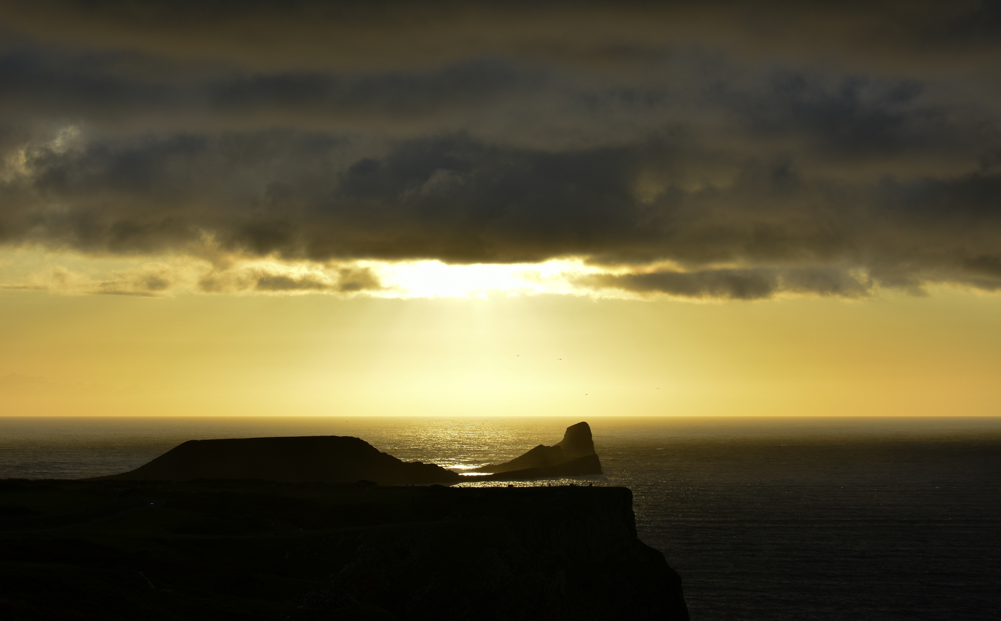 It’s one of those headlands that changes radically depending on the viewpoint, Brenda. I love you imaginative interpretation. Th earlier storm departs as the sun sets.