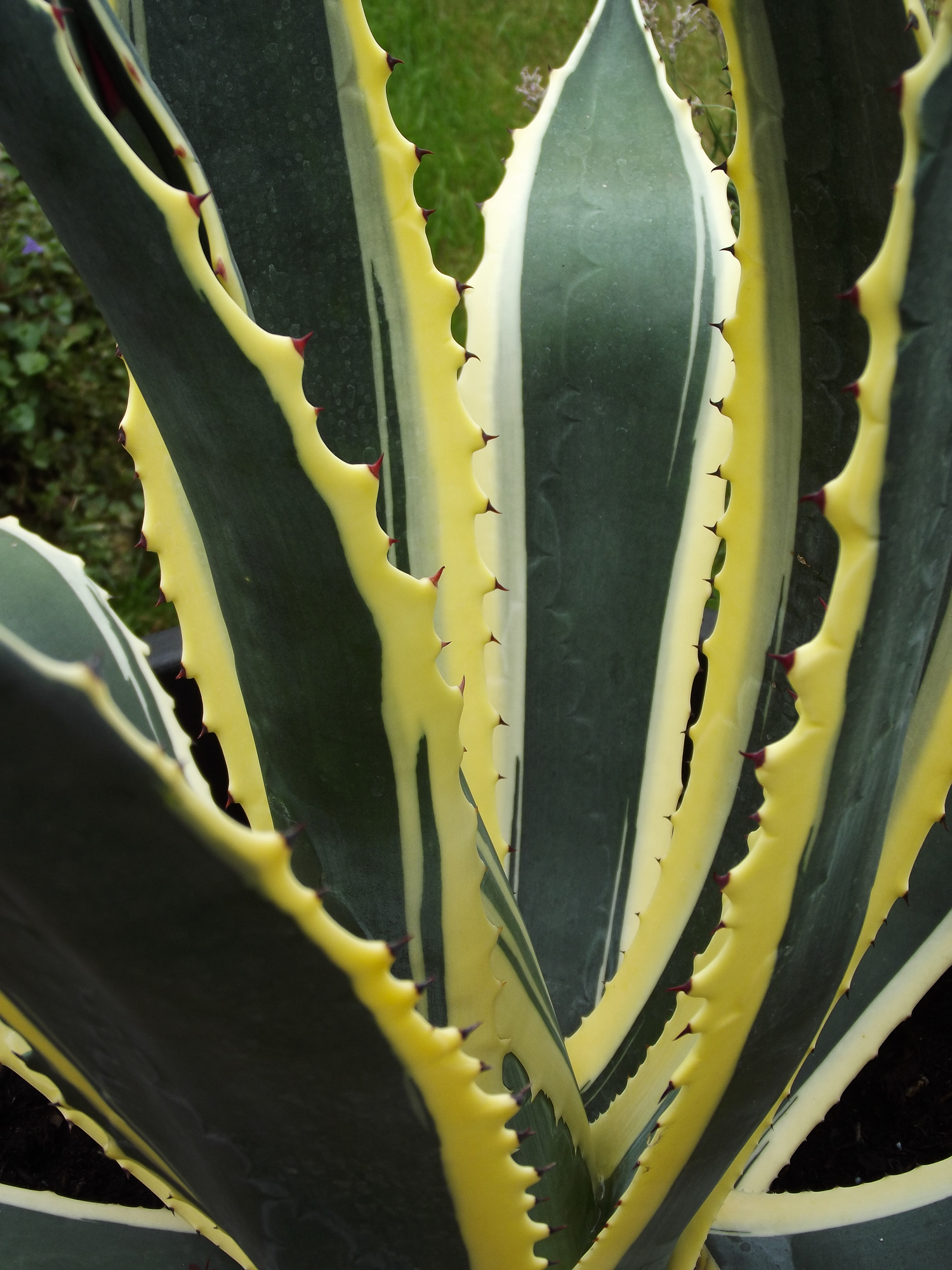 I know from the notes it is Aloe Vera, but look closer and see the sinister spikes and the innocent look of soothing colors waiting for some innocent soul to try to pick one of those gentle-looking spires for relief of burns or scrapes. Thanks for posting.