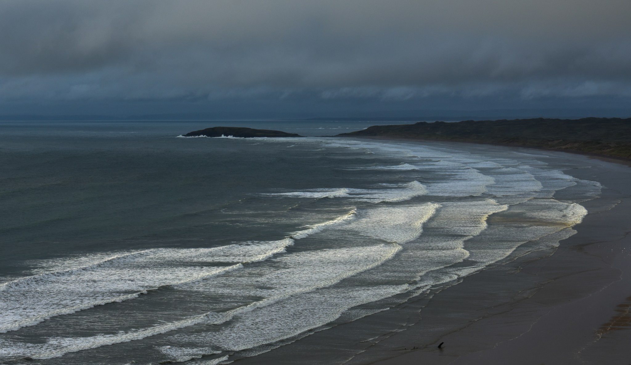 That is a fantastic photo, Stuart! I love how the dark weather is approaching that curved bay. Beautiful.