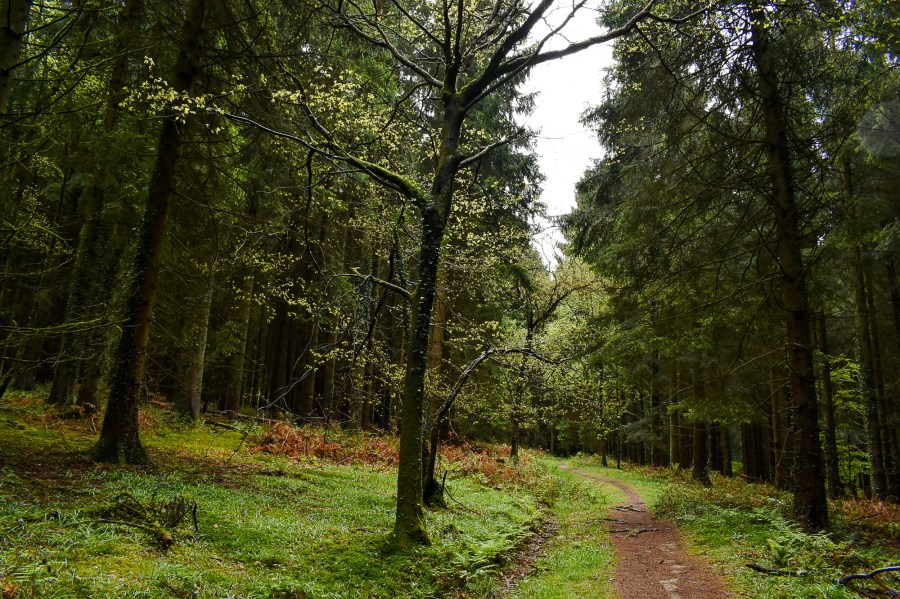Footpath Through Bourts Inclosure in the Forest of Dean Afternoon sunlight sneaks through the narrow gap in the canopy to brighten the early leaves of deciduous trees coming to life after a long winter rest among the firs, pines and larches. (((((((((((----)))))))))) I’m offline till 19th May, so can’t respond to comments, likes, follows, or …