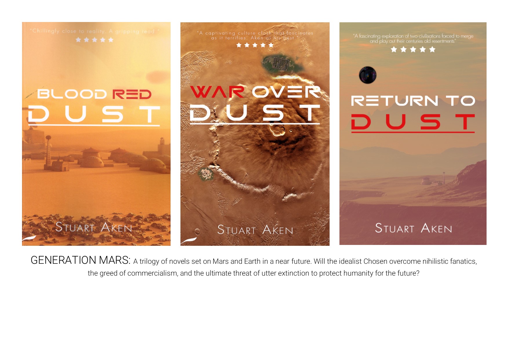 Generation Mars is a trilogy of novels and I’m not noted for brevity in my stories – I like to give readers something they can really settle down and enjoy – so the series runs out at a splendid 847 pages. The final book, ‘Return to Dust‘, is the real story dealing with AI and can be read as a stand-alone. That’s only 247 pages of fast-moving adventure of discovery, relationships, tension, and the desperate fight for survival; a bit like the one we actually face at present over climate change. But that’s another story!