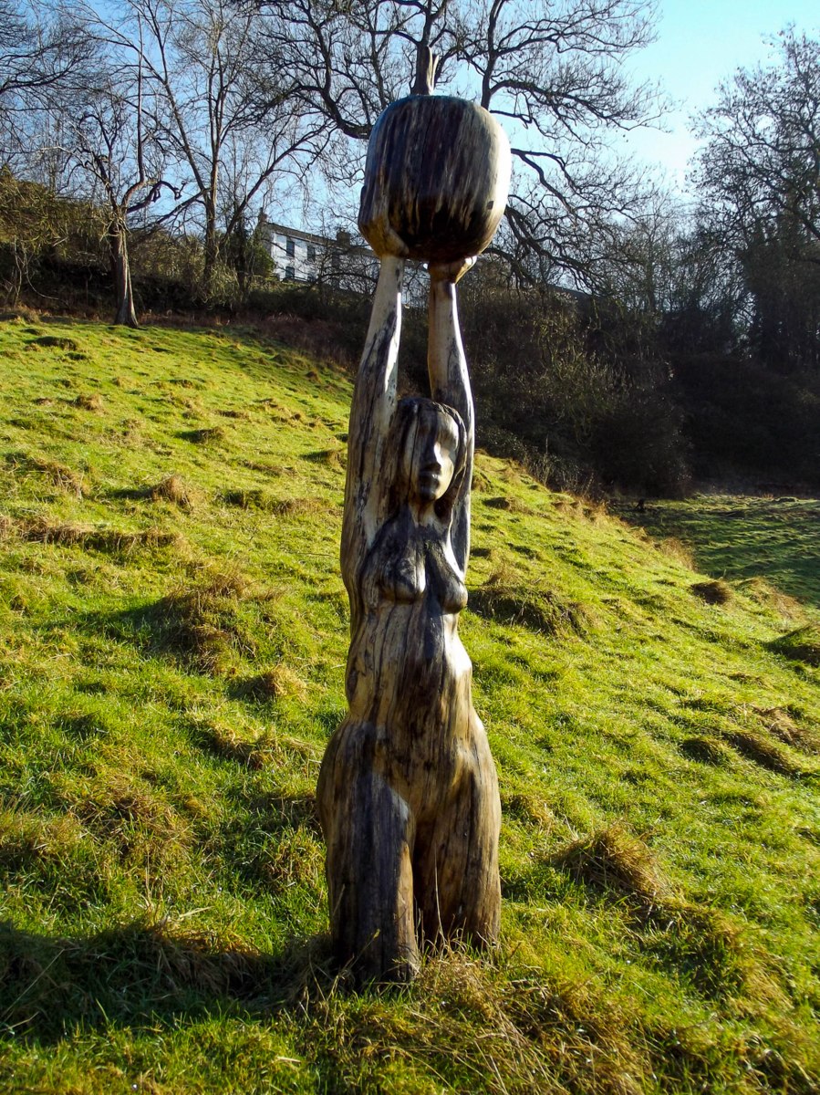 This beautifully crafted, sorrowing and burdened representation of the Biblical Eve, apparently carrying the weight of her so-called sins in that enormous apple, used to stand on a grassy hillside crossed by a public footpath not far from where I live. The wooden statue stood for many years but has recently vanished. I don’t know why.