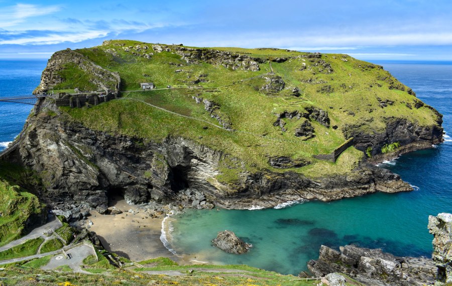 Almost all the island is on a slope, steep in parts, and the remains of the castle are sparse. It’s a rocky, exposed, and fascinating piece of history celebrating the legendary King Arthur. I won’t detail that history merged with legend here. If you want to know more, please follow this link. But nature has wrested much of that man-made history from the land, to leave behind an enigma that’s a joy to explore.