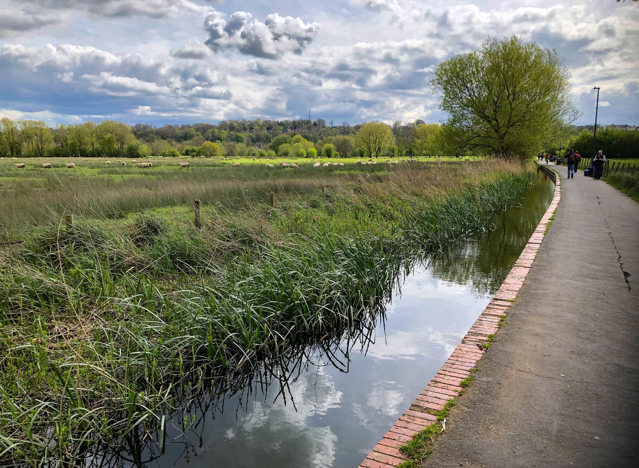 Our longest walk took us toward the Queen Elizabeth Gardens, beside the river, across the Crane Bridge, and along a public footpath that crosses the Harnham Water Meadows on the way to the small village of Harnham, via the Old Mill.