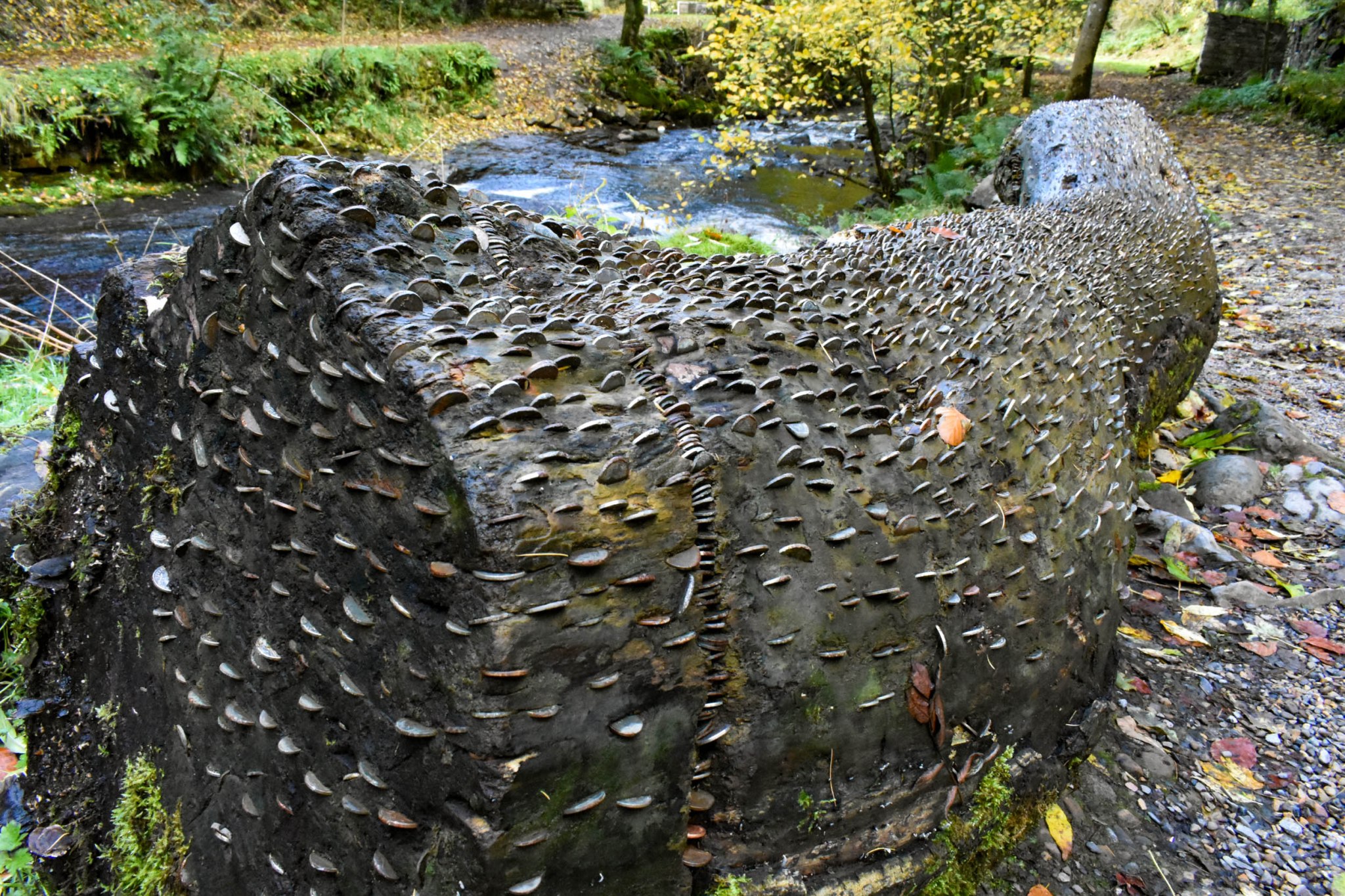 This one looks at the habit of hammering coins into trees. I’ve come across these emblems of superstition in a few places. This one’s a fallen tree near Janet’s Foss in the Yorkshire Dales. But they can be found in many different locations. There are quite a few tales about the origin of the idea of hammering coins into trees, sometimes alive (which is actually a bad idea, of course) but mostly fallen and dead. Apparently, it’s commonly considered that hammering money into a tree can cure a health problem. How this obviously utter nonsense arose is a mystery as deep as many other superstitions, with no evidence such activity has any benefit for the vandal perpetrating it.
